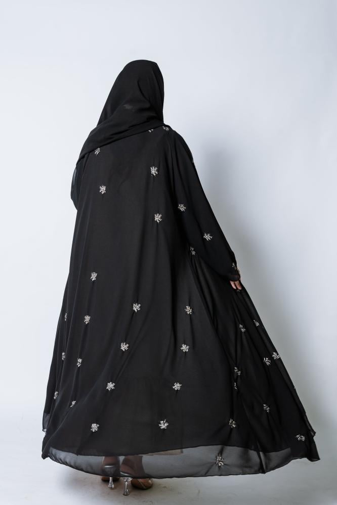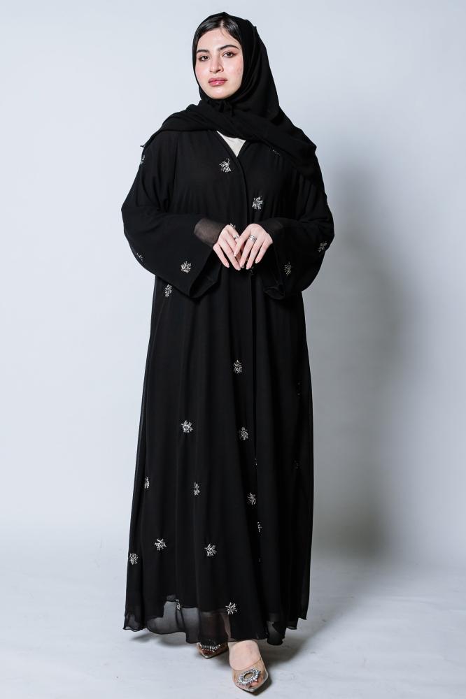 عباية "أريج" بتصميم أنيق من قماش الشيفون الخفيف بطبقتين، مزينة بتدخيلات من الشك بألوان جذابة تضيف لمسة راقية وعصرية. مثالية لإطلالة أنثوية فاخرة تليق بالمناسبات والطلعات.