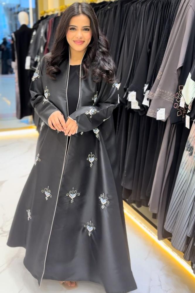 تدورين عباية للمناسبات ب اطلاله ملفته عبايه روز تتميز ب قصتها الكلوش مع تدخيلات من الشك الملون ب قماش تفته