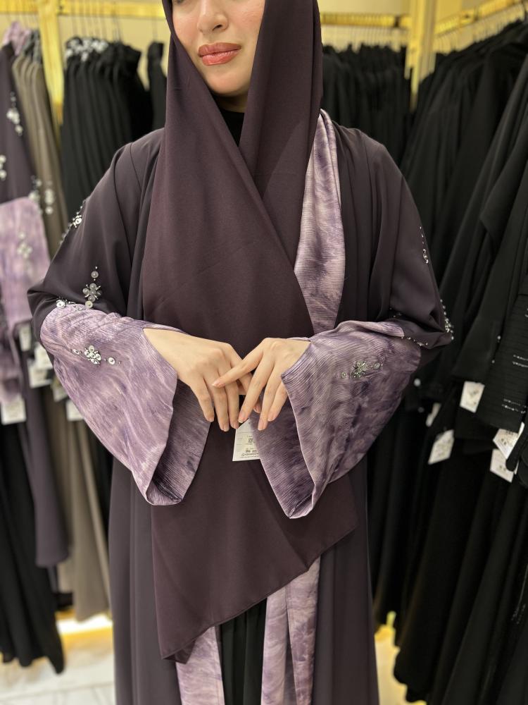 عباية أنيقة مصنوعة من قماش بارد وناعم يضمن لكِ راحة وانتعاش طوال اليوم. تتميز بتطريز ترتر لامع على الأكمام يضفي لمسة فخمة وعصرية تناسب الطلعات اليومية والمناسبات الخاصة.