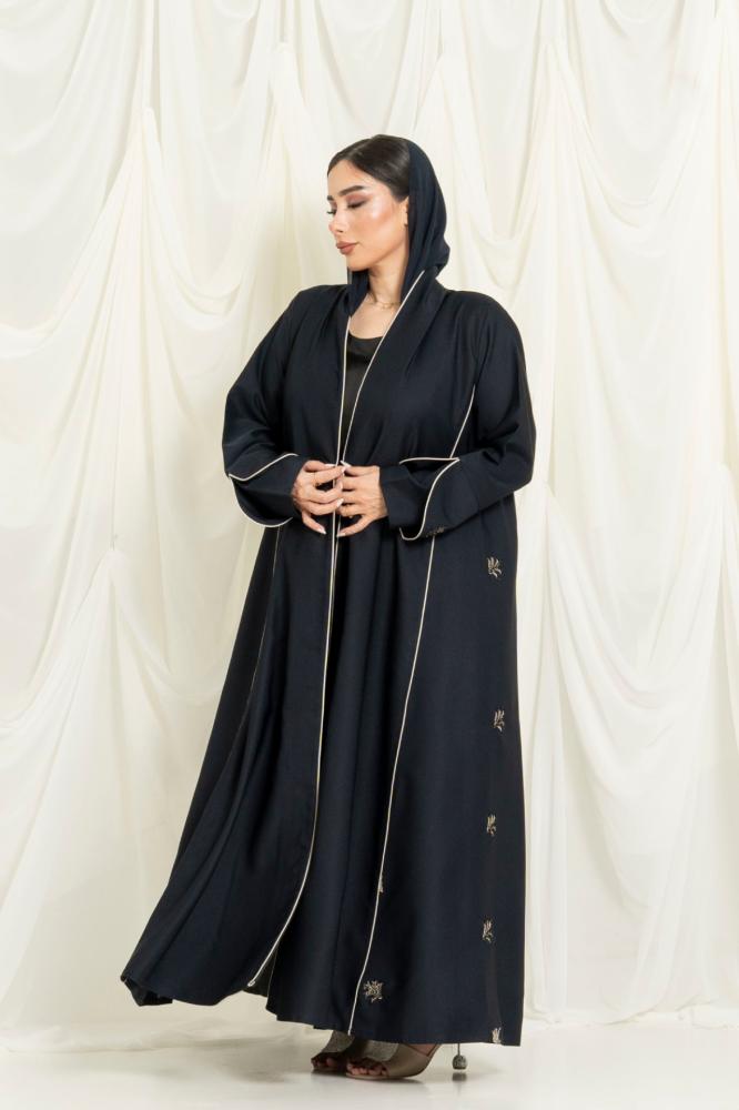 عباية مميزة فاخر، مع تدخيلات شك من الجمب أنيقة من الجوانب وتطريز ناعم فوقه شك لامع يضيف لمعة جذابة.
